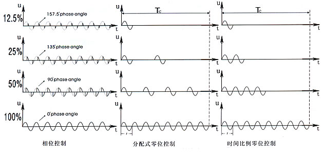 2.節制情勢。綜觀國際外可控硅電力節制器產物,節制情勢不過便是兩種:相位節制和零位節制(分派式零位節制、時候比例零節制)。三者之間的比擬請看以下圖表。